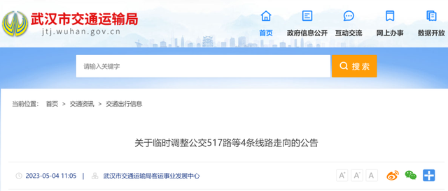 武汉4条公交线路