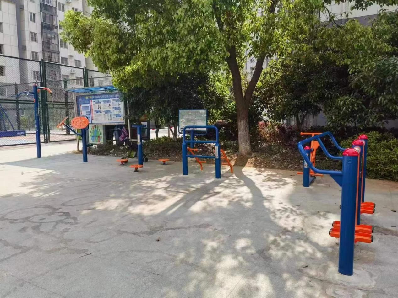 为与周边环境保持同质,兼顾整体美观性,在改造过程中,施工人员对废弃水池整体进行了填平硬化,并重新铺装统一颜色的防滑地砖。结合小区人文特色,在旁原有空地上增设文化宣传栏和运动健身设施。