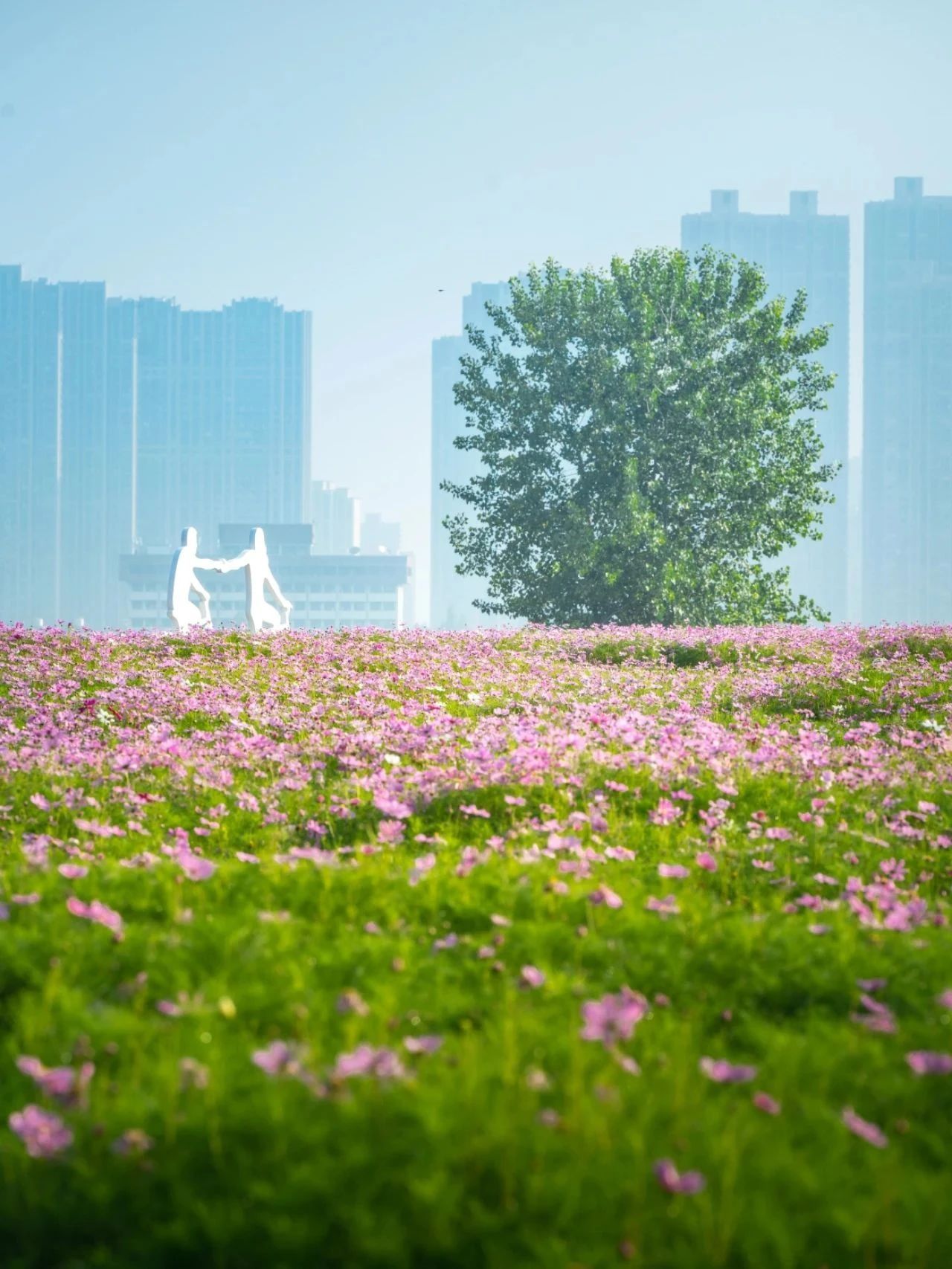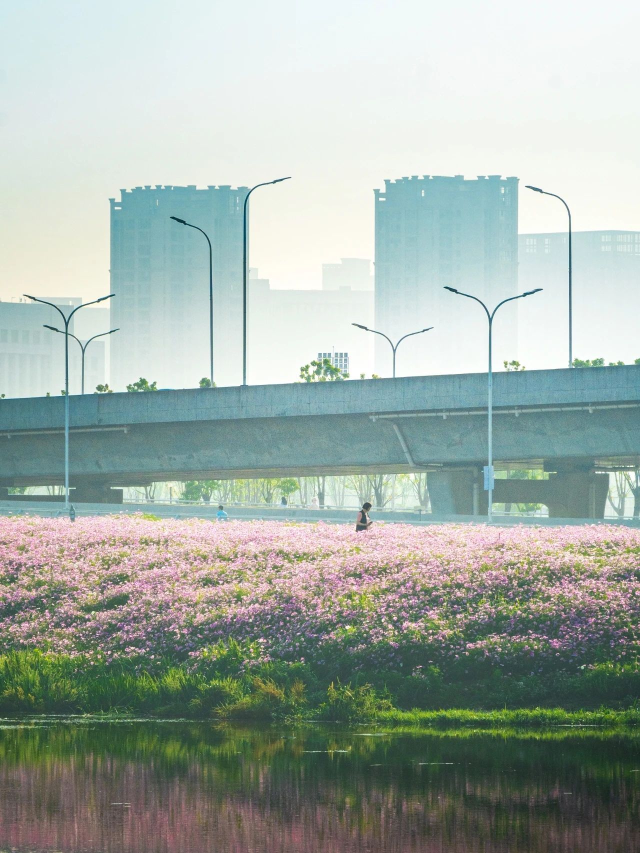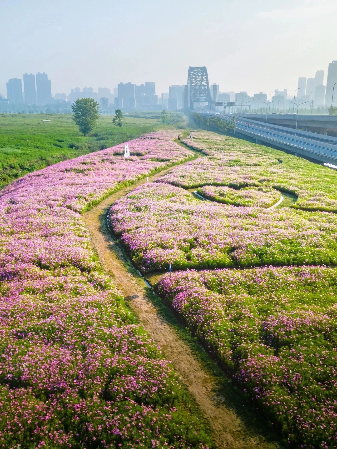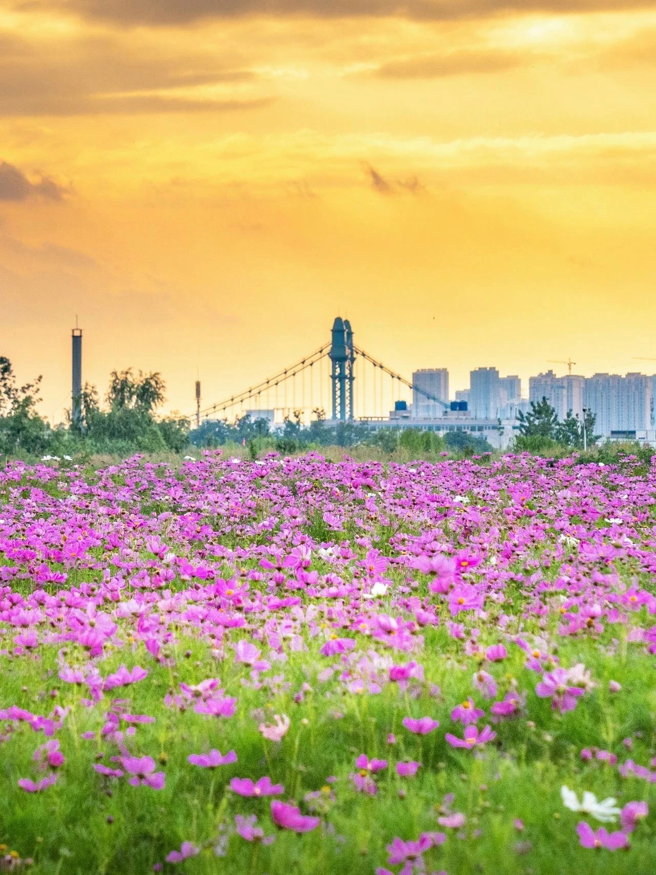 汉阳的汉江湾桥下的波斯菊开了(照片为今日实拍),花海占地20000㎡,从5月到8月都是花期。
