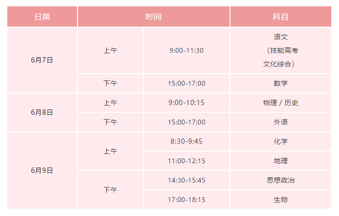 ▷ 07 6月9日高考第三天,上午开考时间为8:30,下午开考时间为14:30,较前两天均提前了30分钟。