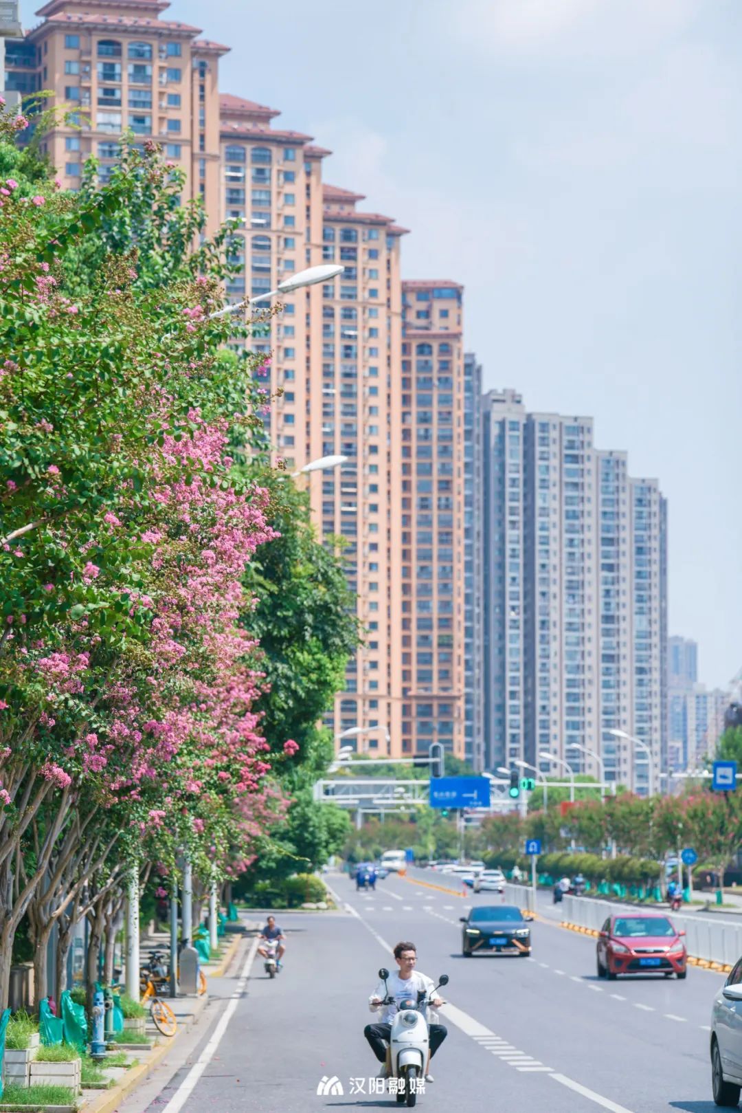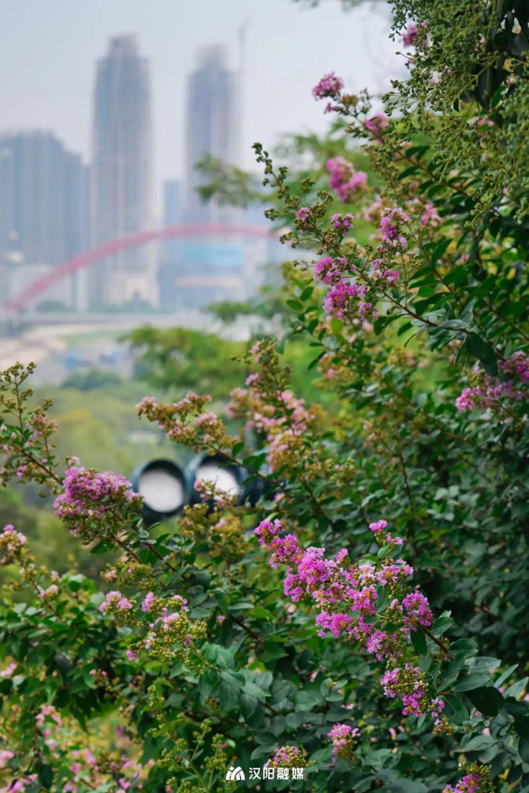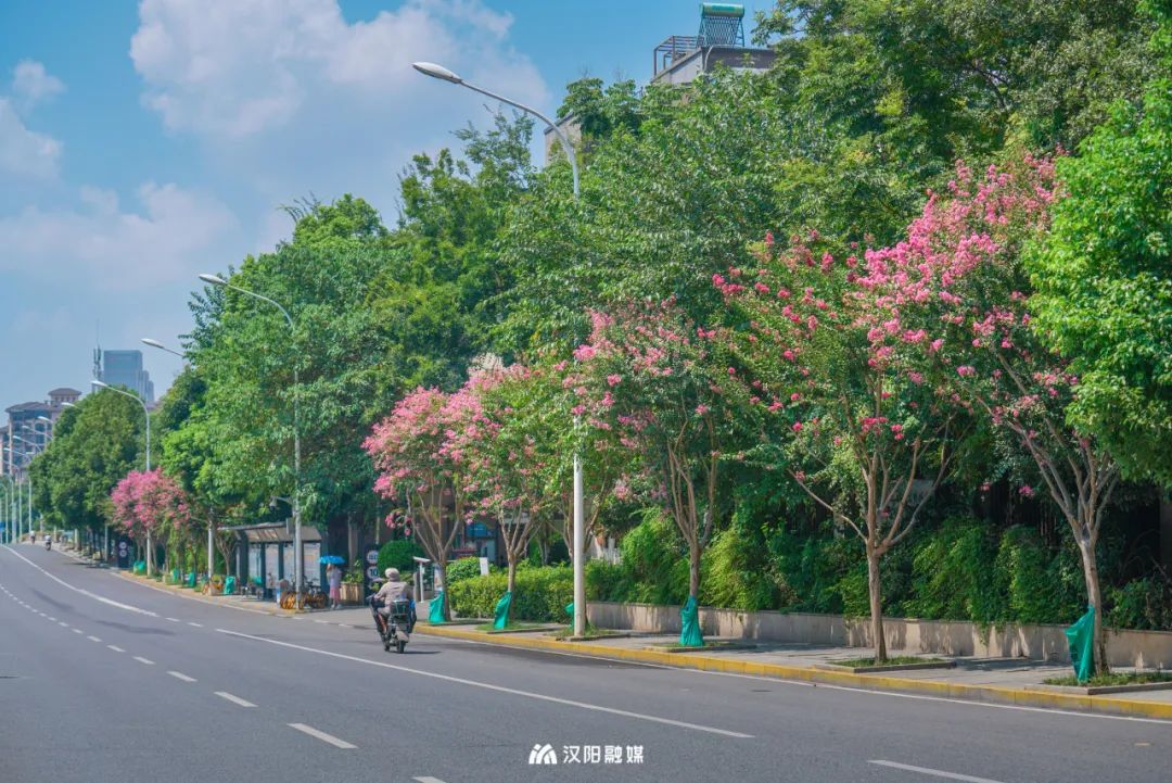 夏季开花植物较少,但汉阳的五彩斑斓却从未缺席。从春天的月季到夏季的紫薇,一簇簇的花花,将许多道路铺满。