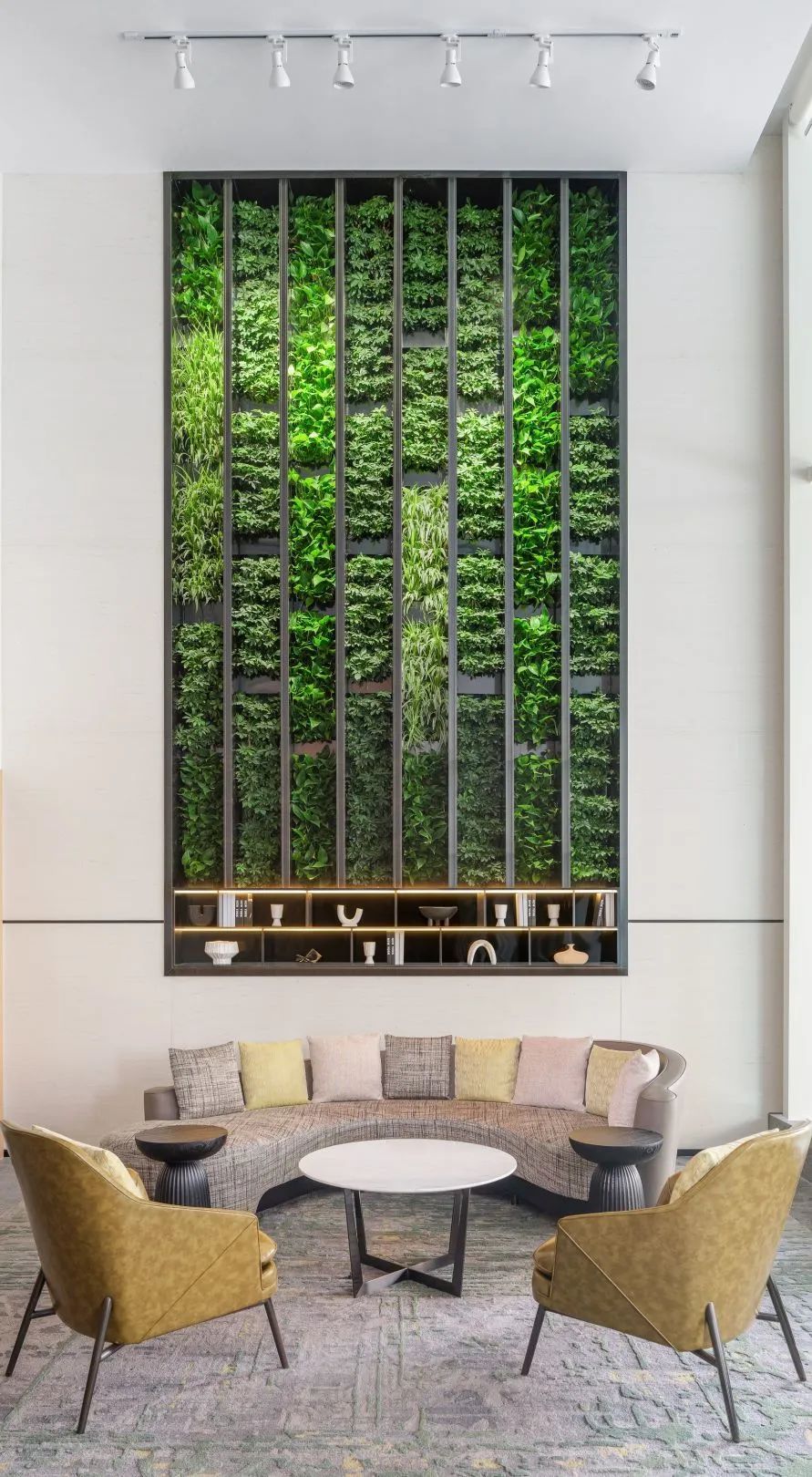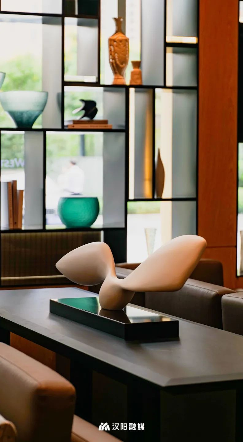 走进汉阳威斯汀酒店的大堂,可以发现不少设计巧思:大堂中心的吊饰旋转在空中,营造出“飞鸟归巢”的灵动感;右侧一整面绿意盎然的绿植墙,均传递出万物亲和、健康绿色的设计理念。