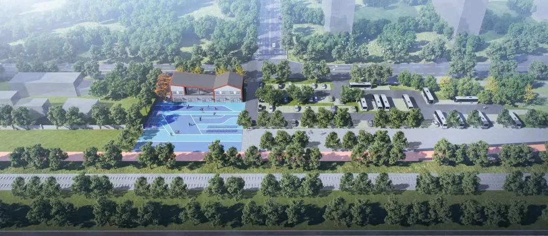根据规划方案,项目将在北侧修建一处商业楼,总建筑面积为822㎡,总共有两层。外立面仿红砖质感的陶土砖幕墙与玻璃幕墙搭配,整体看上去厚重不失轻盈。驿站前设休闲广场,最大时长为市民提供观景、停留、休憩场所。
