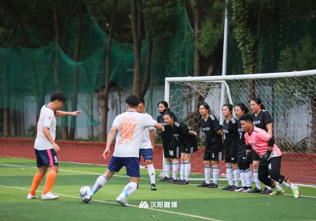 湖北省广播电视学校绿茵场上,女足晴川宝宝队VS男足苏泊尔队。