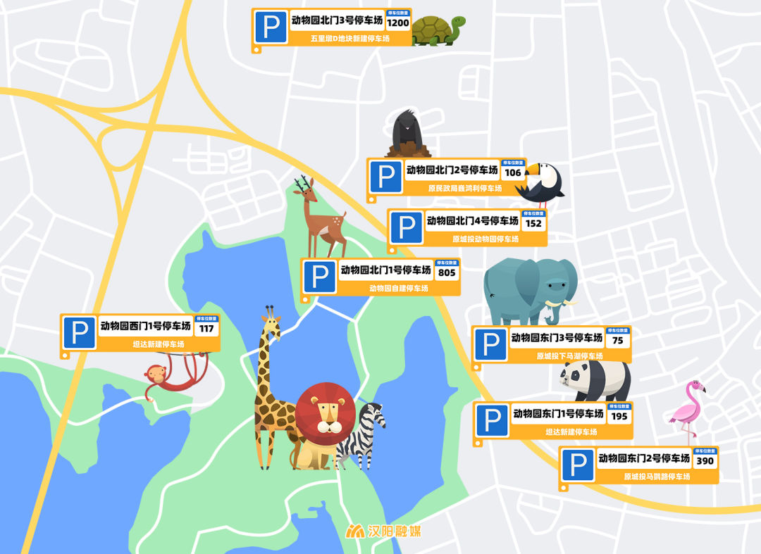 每个停车场有几个出入口、多少停车位,汉阳君整理了图文并茂的详细攻略,详情请点击>>《武汉动物园周边停车指南》建议收藏~