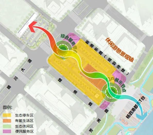 △杨泗港都市T台生态停车场整体鸟瞰图。(效果图)