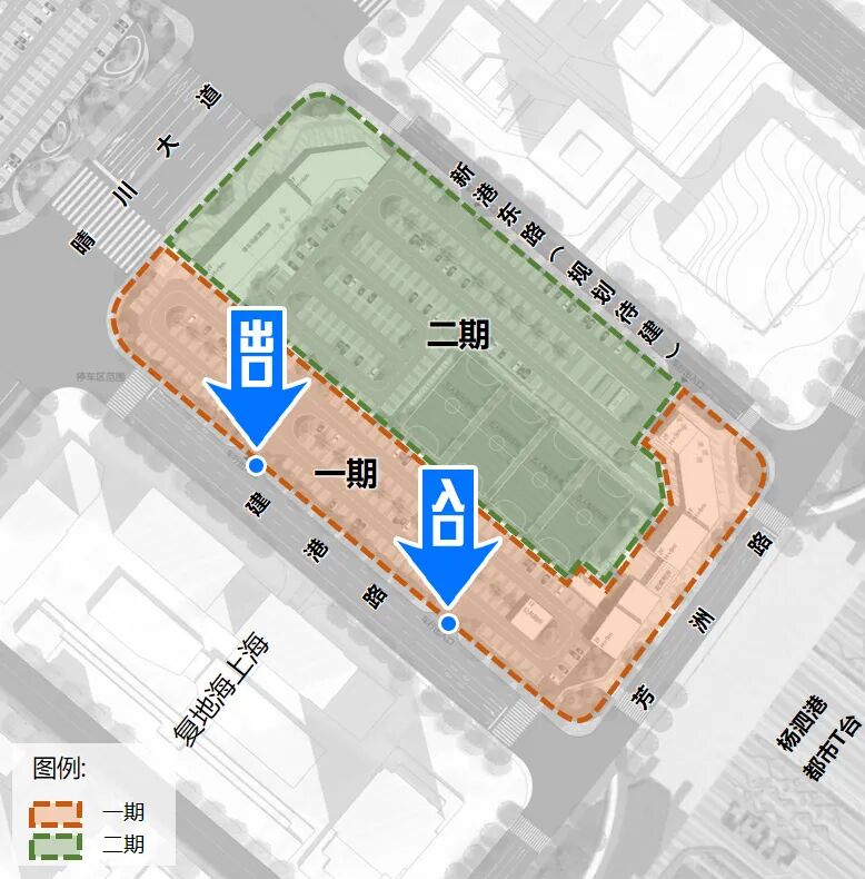 停车场设置有一个入口和一个出口,请自驾的市民游客按照上图图示,从建港路进出停车场,并请根据现场停车指示牌,有序停放车辆。
