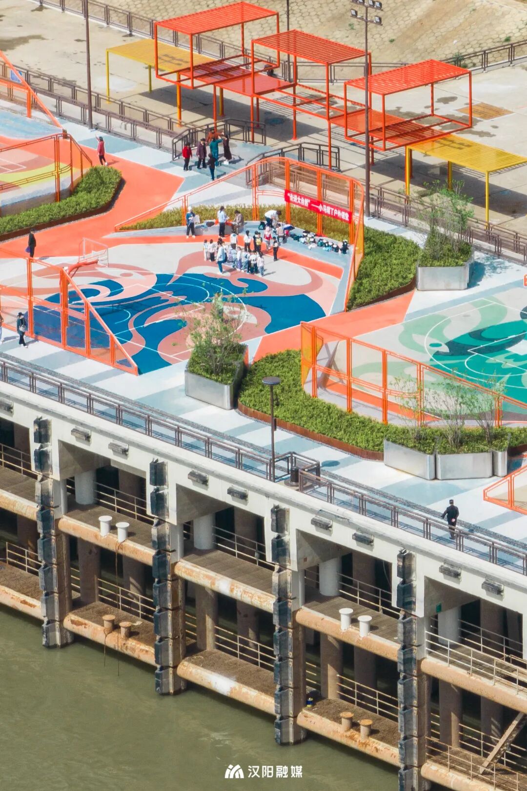 杨泗港都市T台惊艳亮相,每片篮球场上都涂满了国潮京剧脸谱,让历史融入年轻人的生活。