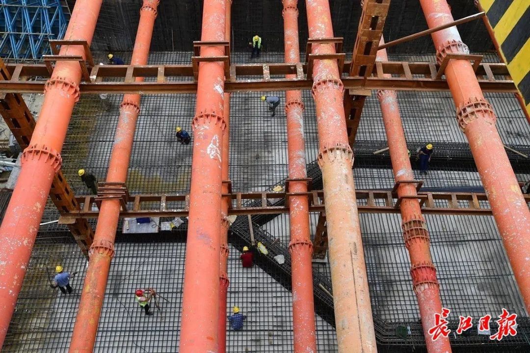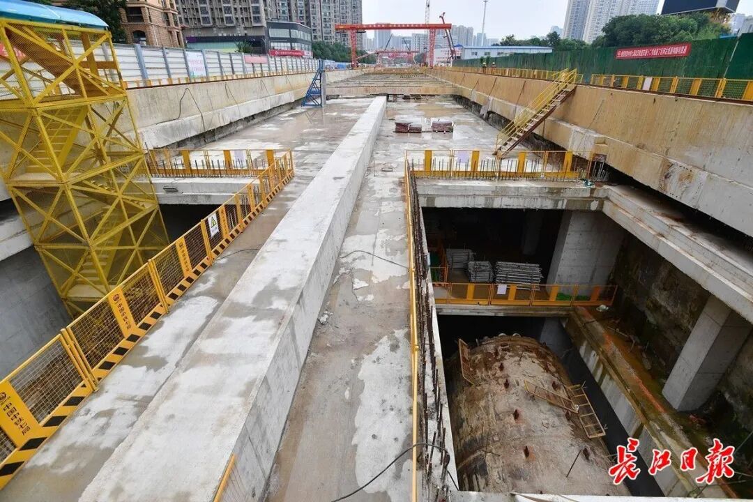 丁家咀站位于汉阳芳草路,记者沿车站步行发现比一般车站长。施工方中铁七局项目副经理支亮亮介绍,丁家咀站是一座地下两层车站,全长531.1米,是12号线最长的一座车站,长度达到普通车站的两倍多,共设8个出入口、4组风亭、5个安全出入口。“建设期间,这里设有铺轨基地,车站中段还预留了远期26号线换乘条件,所以车站较长。”支亮亮介绍,目前车站主体结构施工已完成80%。