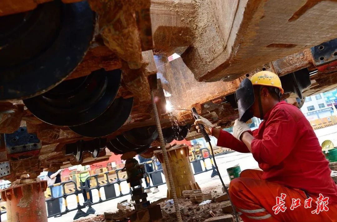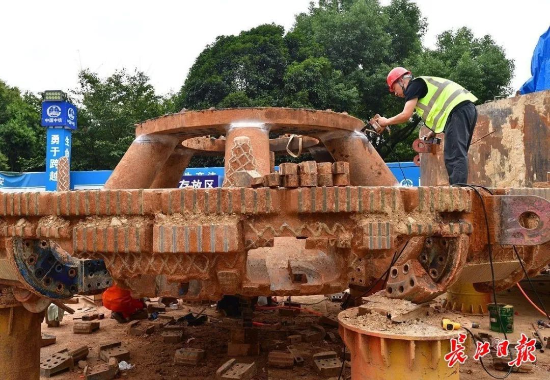 车站南端,完成右线掘进任务的“先锋号”盾构机静静躺在接收井底,由于左线已于8月17日贯通,至此双线顺利贯通。“港丁区间有一段硬岩,强度达到251兆帕,盾构机掘进如同在钢板上钻孔。”武汉地铁股份公司业主代表陈思远介绍,为确保施工稳步推进,地铁集团和中铁七局项目部专门组建科研攻关团队,先后10次邀请地质、地铁、工程和设备专家现场考察,并联合刀具厂研制专“啃”硬岩的刀具。“提前一个月完成突破,创造了国内盾构机穿越极硬岩石的新纪录。”陈思远说。