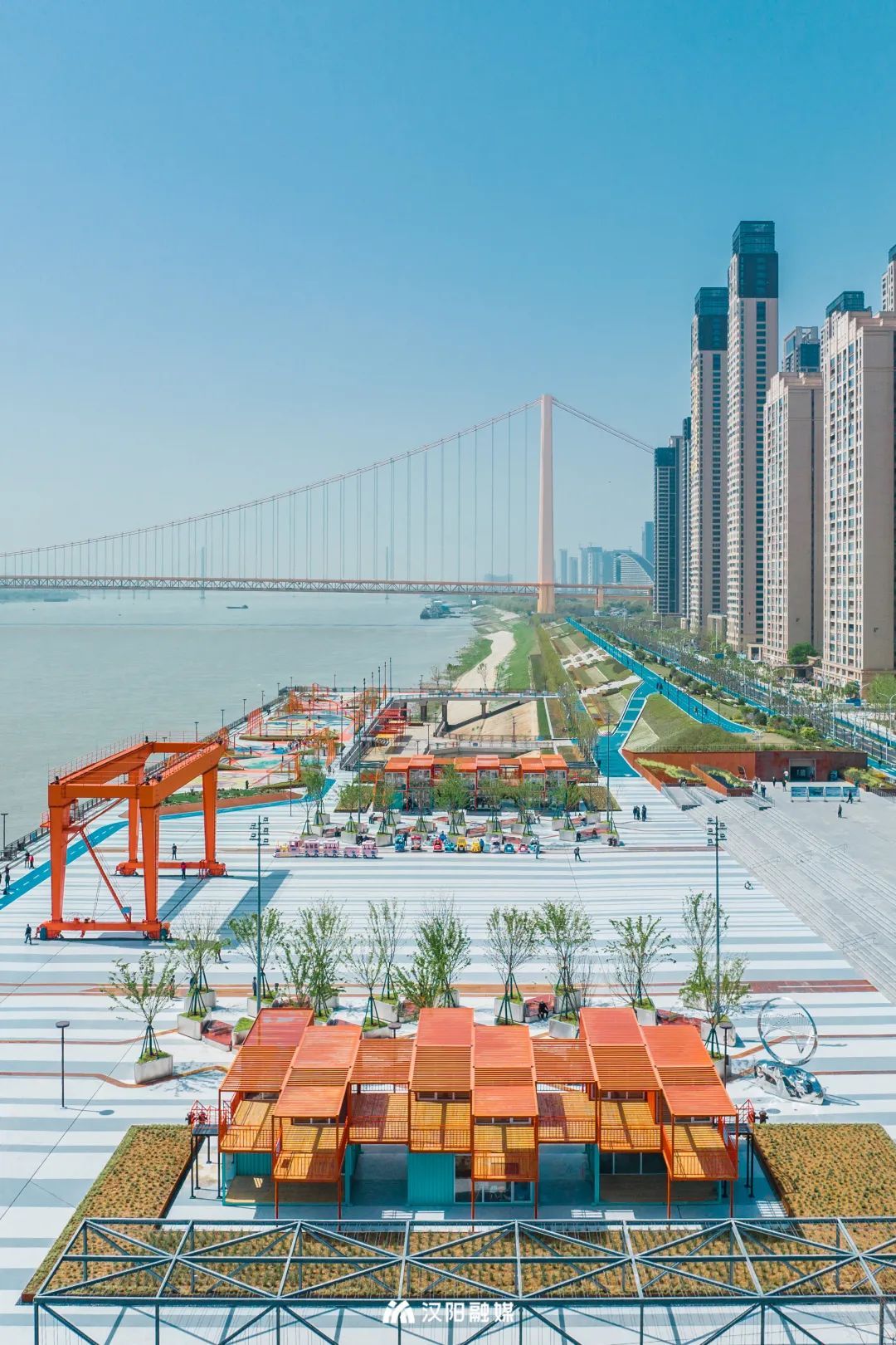 如今,港口易地搬迁,原地建起的滨江乐园成为汉阳江滩最后一块“拼图”。为了留住独特的工业记忆,龙门吊、集装箱被以特殊的形式保留了下来。