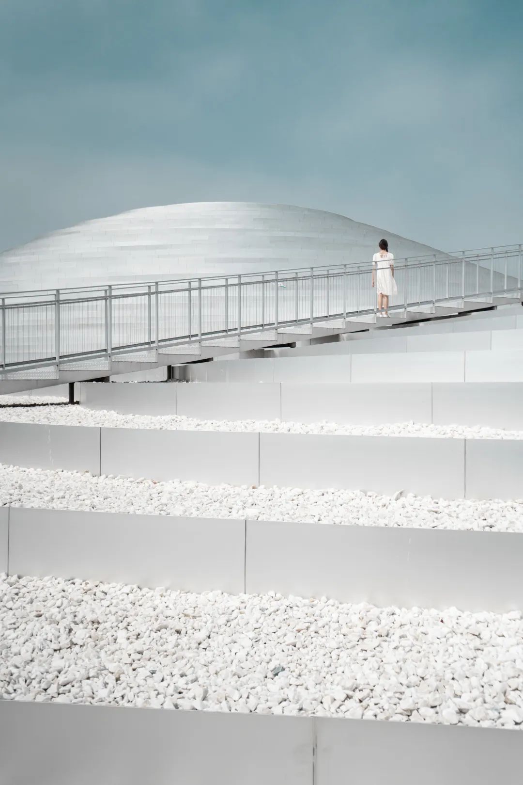 就座于汉阳知音大道77号C位的武汉美术馆(琴台馆)外观形似柔和的银白梯田,将武汉的人间烟火气和时尚艺术气息尽揽于胸。自开馆以来,吸引了许多“拍客”争相打卡。