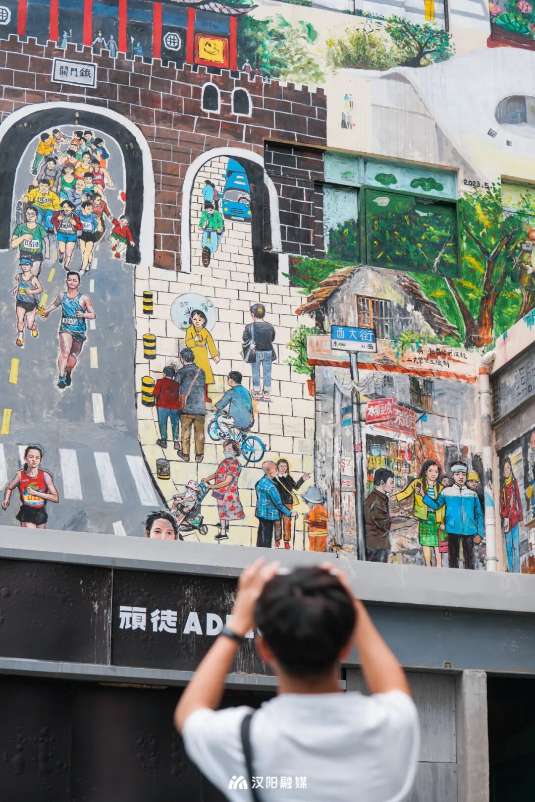 与此同时,“祁遇”的侧墙上,一幅7层楼高、面积达300平方米的彩绘墙画也让人不得不停下脚步。这是目前武汉市最高的墙画。