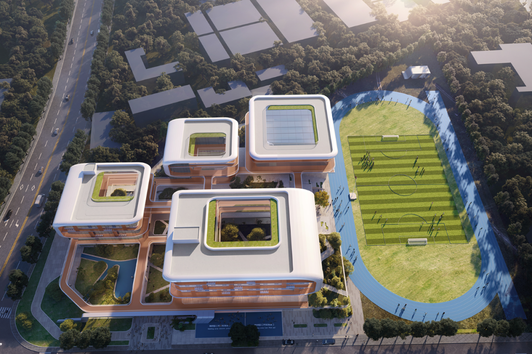 此外,中信建筑设计研究总院有限公司将校园场地设计为三级台地模式,创造层次丰富的立体校园,被评为第二名;中南建筑设计院股份有限公司以“书山琴韵,流水绿院”为设计理念,顺应地形, 整个形体犹如水纹流畅,曲线舒展,呼应高山流水的高雅之景,被评为第三名。