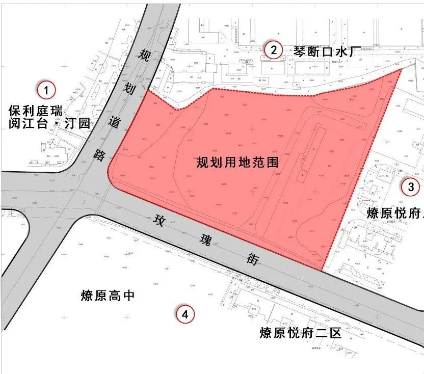 燎原初中位于汉阳区玫瑰街以北,琴台大道以南,与建设中的燎原高中隔玫瑰街相望,总用地面积21452平方米(以实测为准),容积率1.0左右,预计规划24个班。