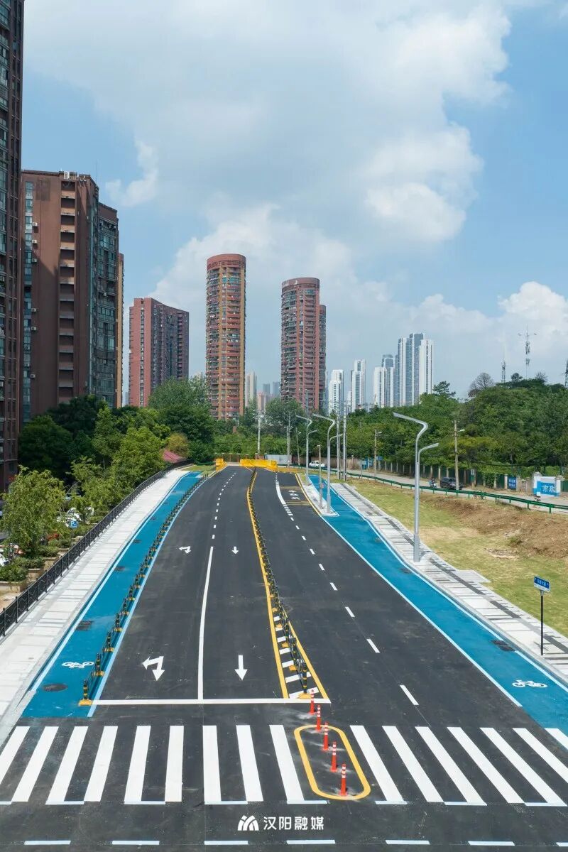 从知音大道(郭琴西路-仙女山路)段沿郭琴西路转入琴台大道南侧,一直打围建设的道路同日也正式贯通了。