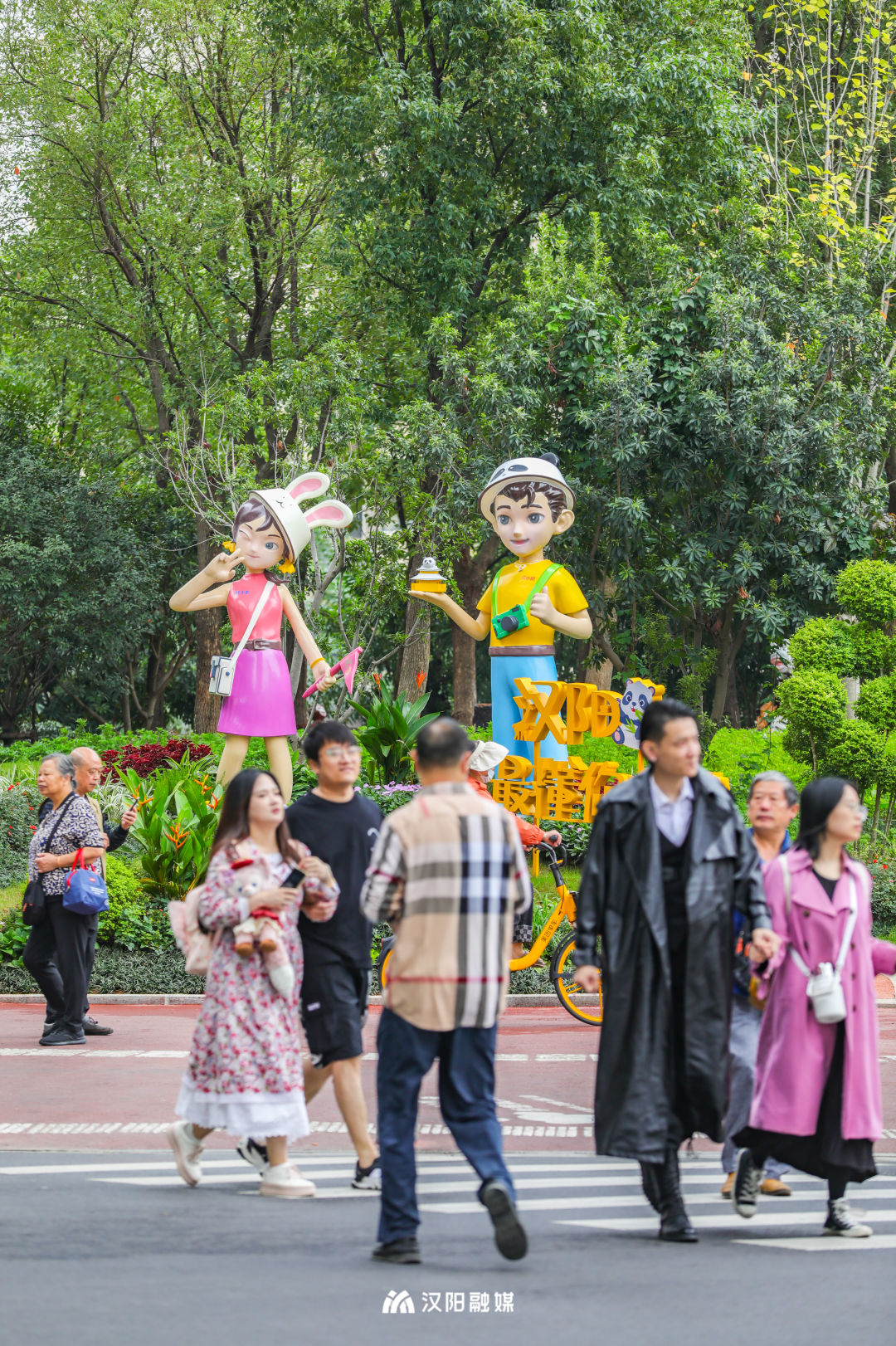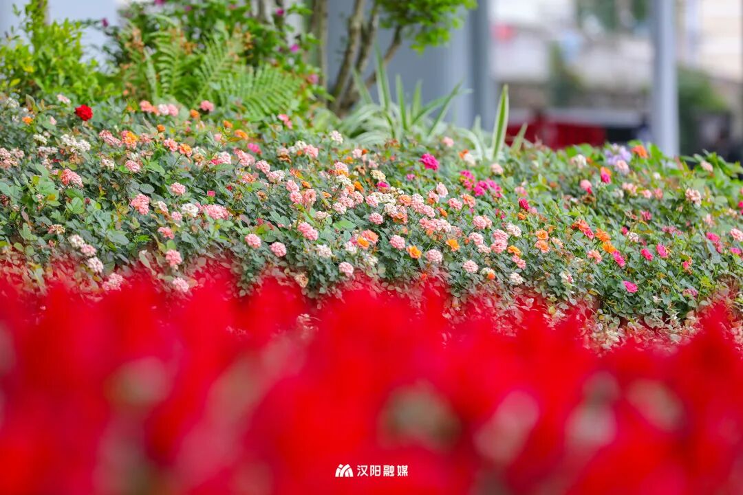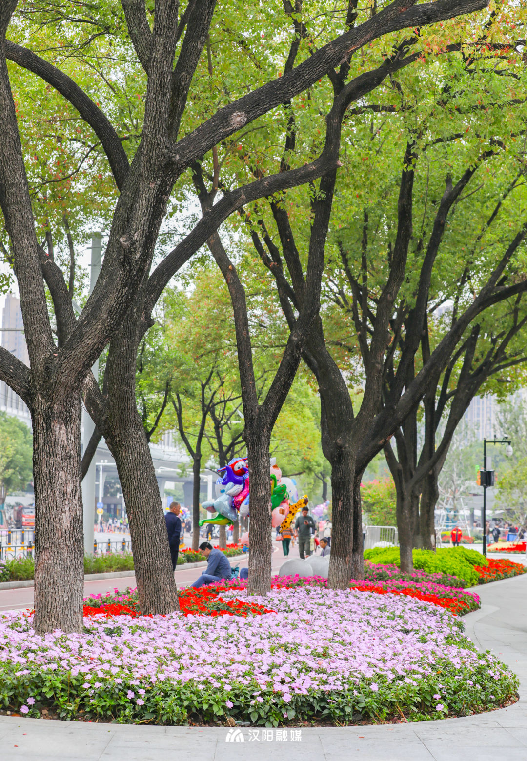 绚丽多彩的道路鲜花带特色创意的街头花境区萌气十足的动物雕塑点更有汉阳双生虚拟形象代言人“知小音”“汉小阳”以卡通版实体形象扮靓街头……