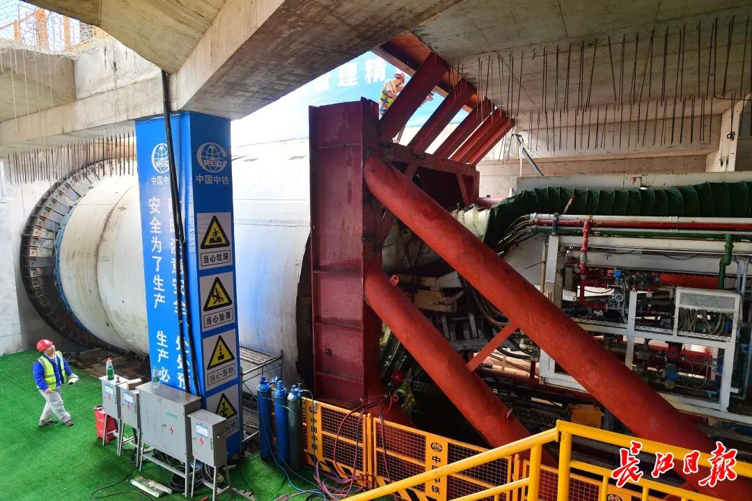 在17米深的车站底部,只见四新中路站至芳草路站的右线区间盾构机正在做始发前的准备,施工人员正在调试。