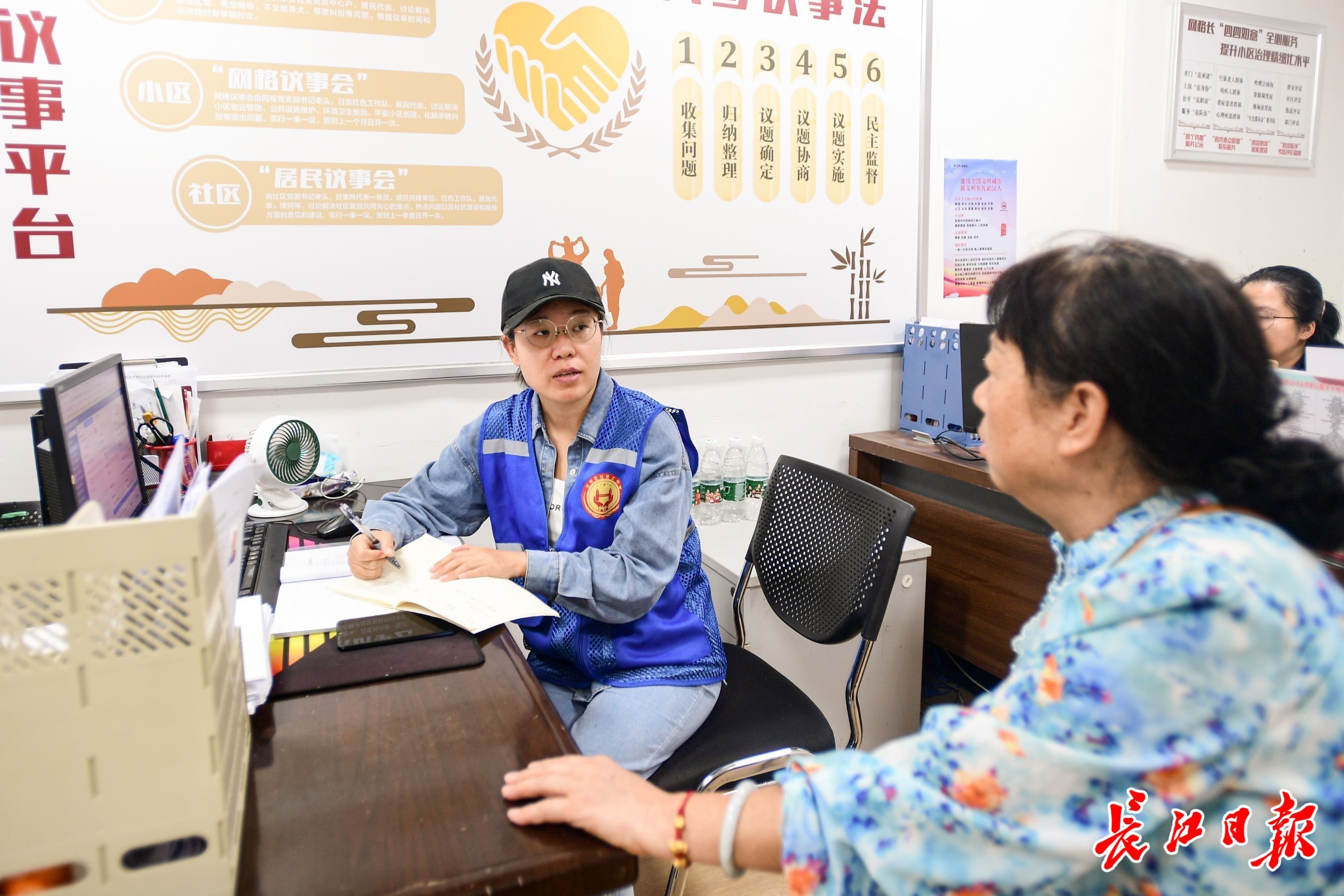汉阳区七里一村社区把办公桌搬进小区,居民下个楼就能办成82项民生类“高频事”。