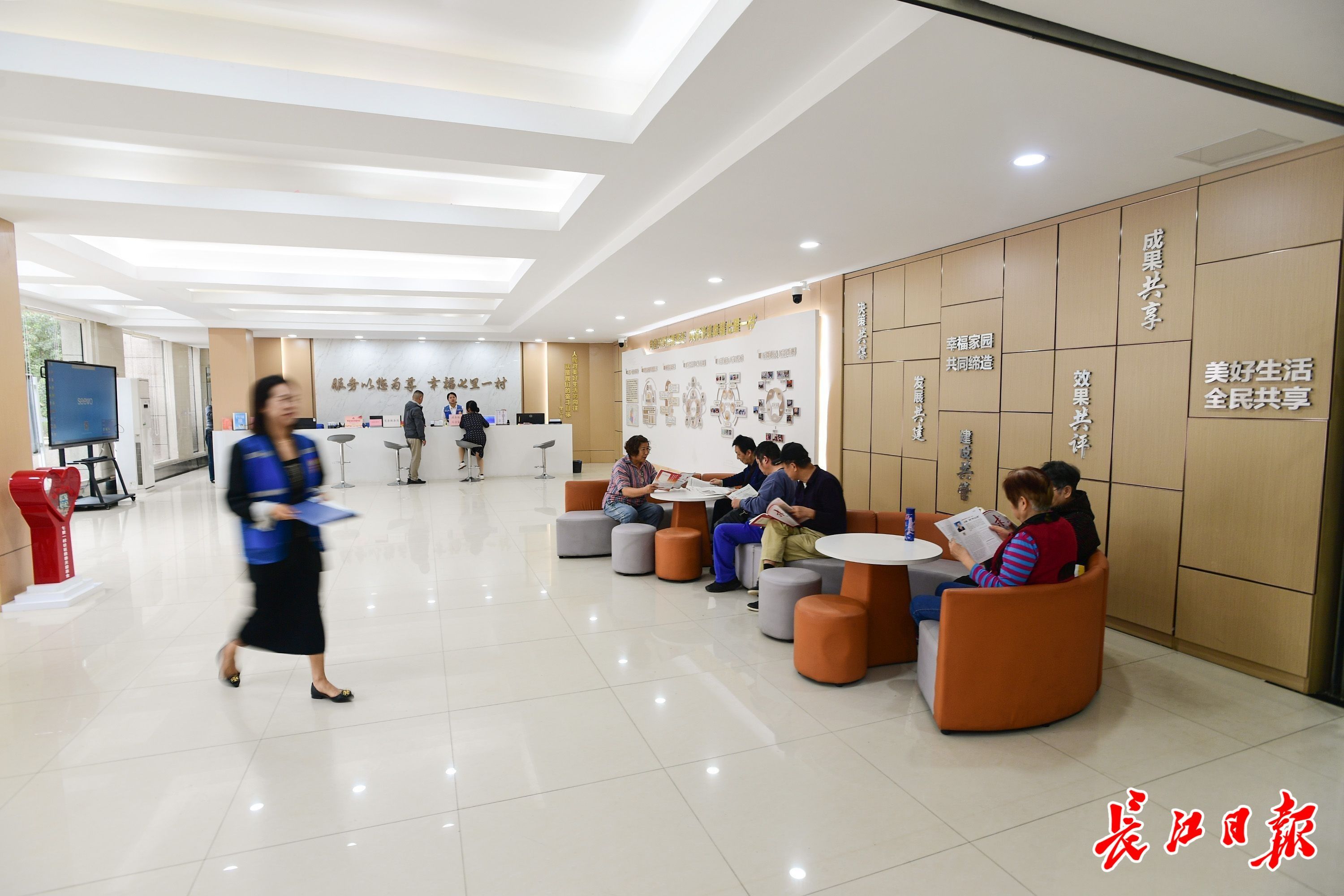 汉阳区七里一村社区党群服务中心,“办公室式”的办事大厅场景消失不见,取而代之的是沙发、圆桌等“家居式”布局。长江日报记者史伟 摄