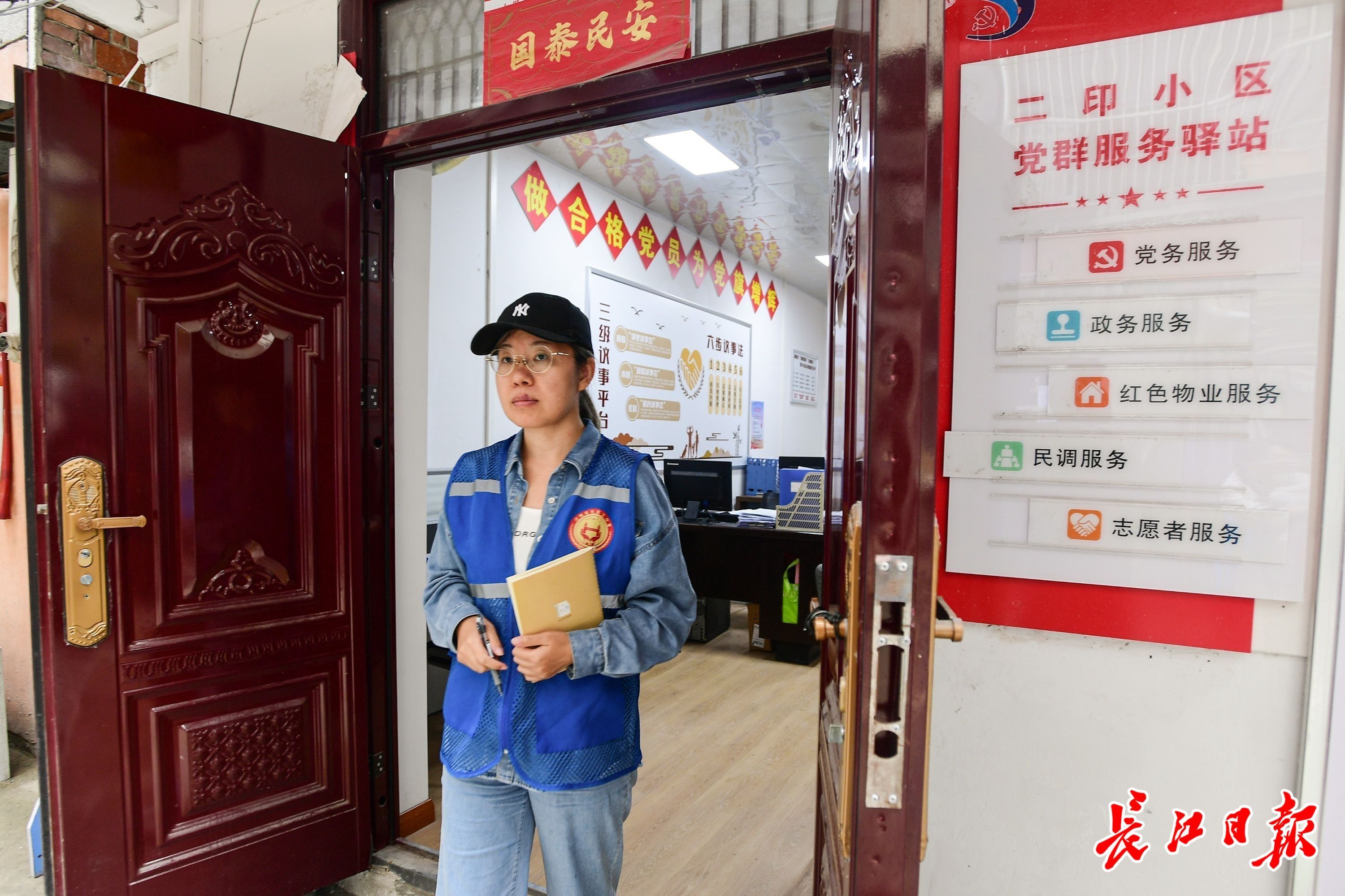 网格长陈婧走出红色驿站,到居民家中走访。 长江日报记者史伟 摄