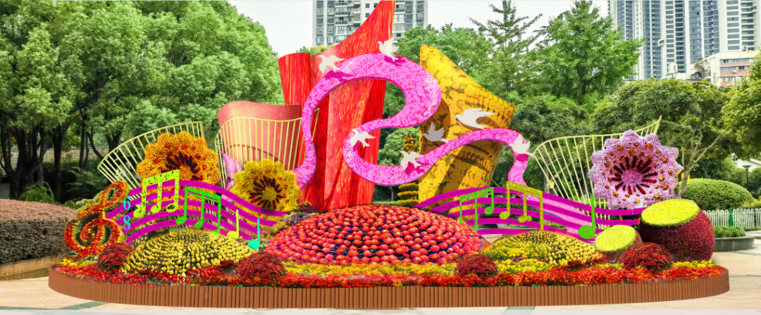 “我们在展区入口采用绿雕拱门形式,丰富景观效果。”相关负责人介绍,还将在道路沿线分两层,摆放1-2米宽花带,选取乒乓球菊、一串红、彩叶草等形成多元色带,在重要节点摆放塔菊、立菊、球菊等作为点缀,营造独特意境。