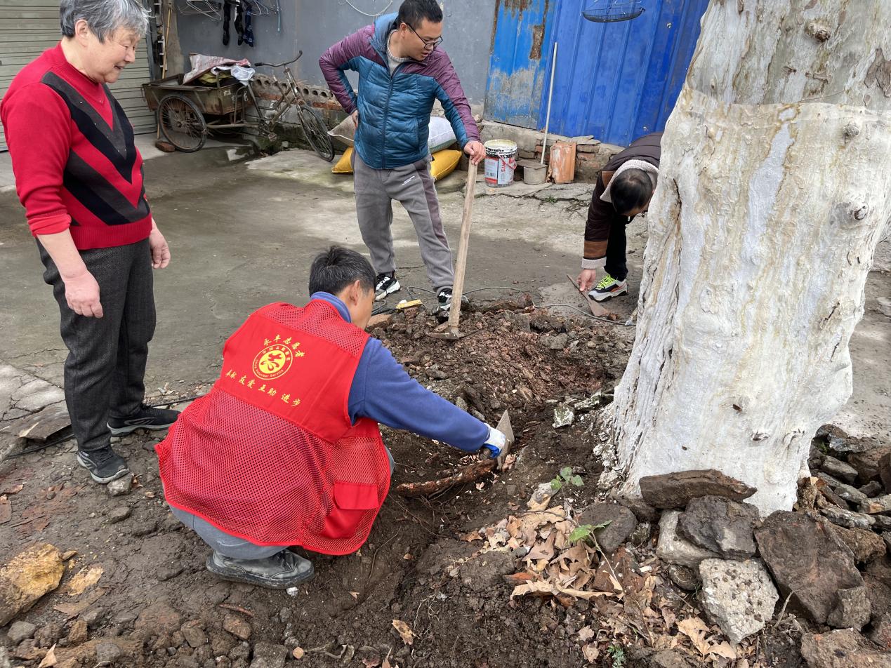 12月14日,汉阳区三眼桥社区吴湾居民反映自家水压低、用水不畅。了解情况后,社区第一时间与居民取得联系,入户查看并安抚居民,同时,及时联系社区红色志愿服务队现场进行排查,发现位于吴湾89号、90号、91号主路下因树根生长水管破裂造成管道破损漏水,如不能及时解决,将造成部分居民不能正常用水。