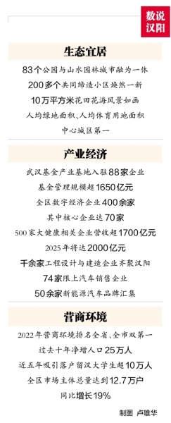 一流的营商环境为汉阳磁吸了一大批青年人才和创新创业公司。郭笑撰介绍,汉阳近5年吸引落户留汉大学生超10万人,容百新能源、百度飞桨等行业领军企业落子布局,全区市场主体同比增长19%,优秀人才、优质项目如雨后春笋般在汉阳涌现。