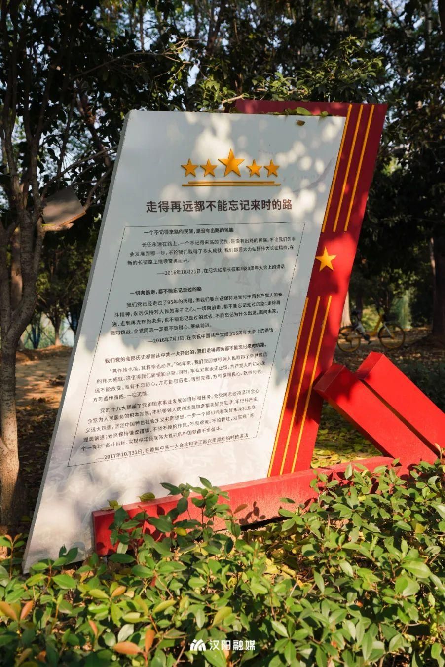 汉阳君在室外布景处看到,该区域免费对外开放,有不少市民打卡体验。沿着墨水湖绿道,飘扬着红旗的栈道与红色事迹宣传展板辉映,展板上翻雪山、过草地、激战腊子口等11个红色故事,再现红色历史,追忆长征足迹。