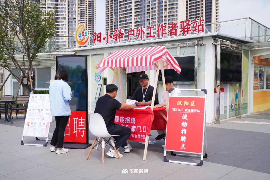 据介绍,自今年7月就业促进大会(点击跳转)以来,汉阳区借力行业翘楚红海直聘平台的AI数字技术,依托人力资源服务产业园及“阳小驿”户外工作者驿站、工会“爱心驿站”、小区红色驿站和社区党群服务中心等阵地资源,采用“政府主导+社区共建+市场化运营”的推进模式,构建“1+21+N”三级就业服务驿站(点)体系,打造“家门口”就业服务站,布局覆盖全区的“15分钟就业服务圈”,推进岗位供求信息下沉匹配。