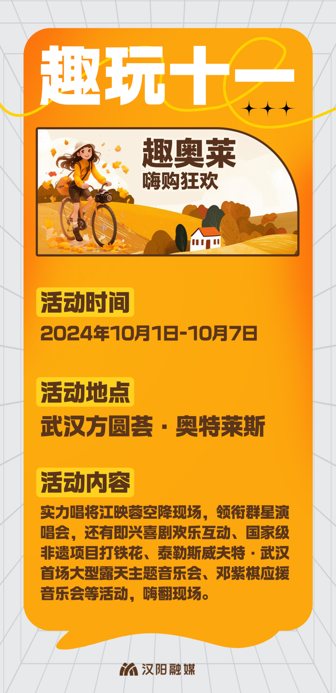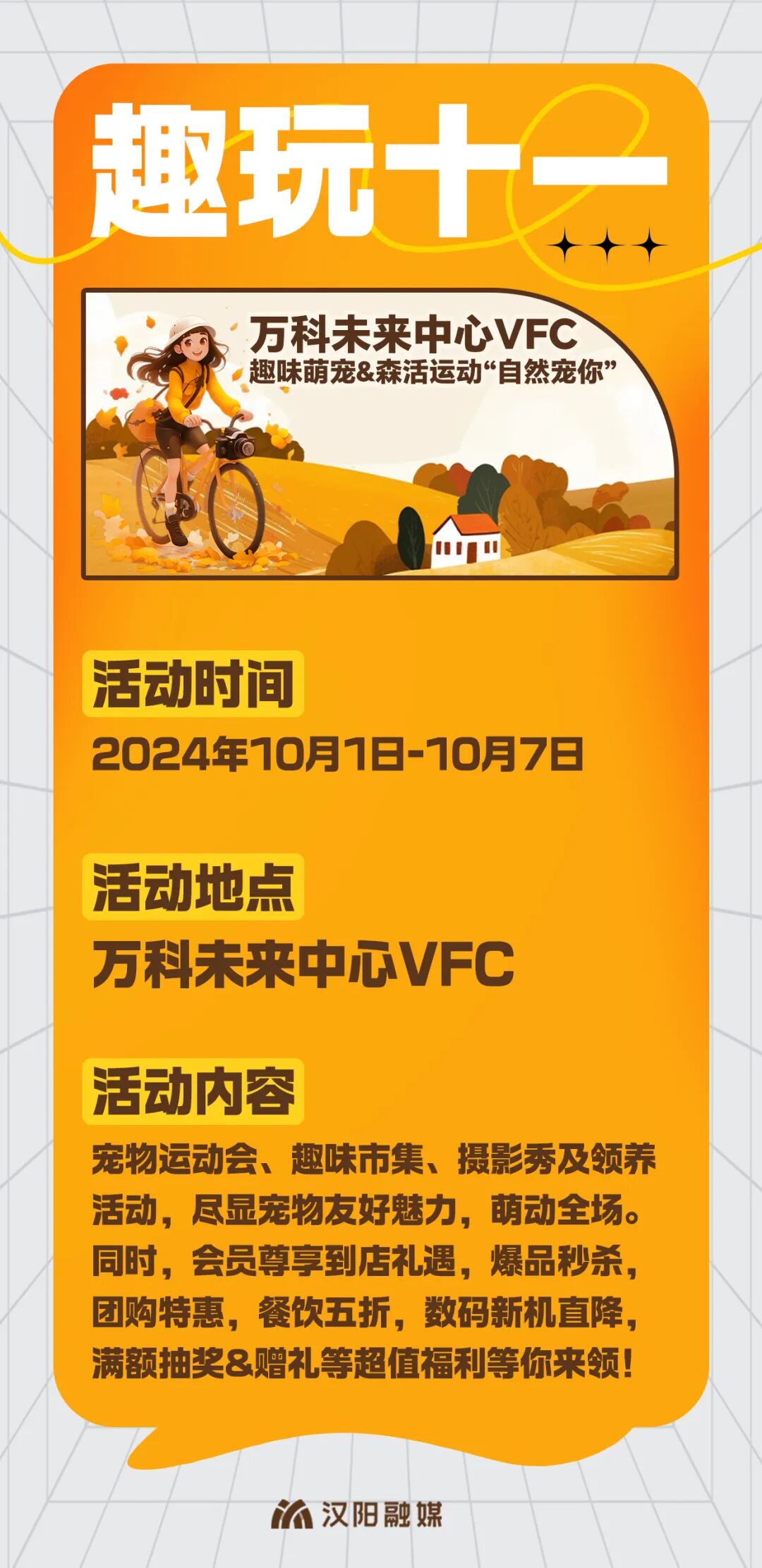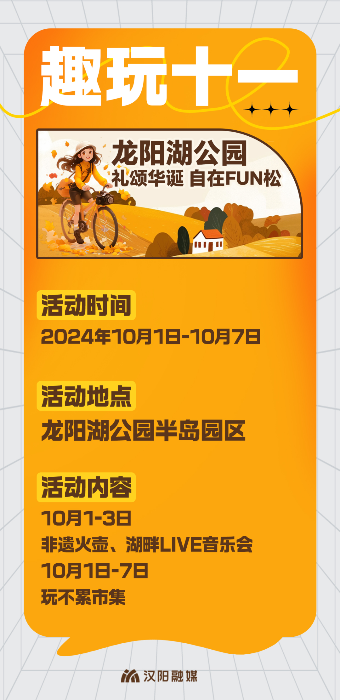 玩乐游购秘籍已解锁,即刻启程!速来汉阳体验一场文艺新潮、治愈解压、亲子互娱的秋日限定浪漫,开启超松弛的假日之旅吧。