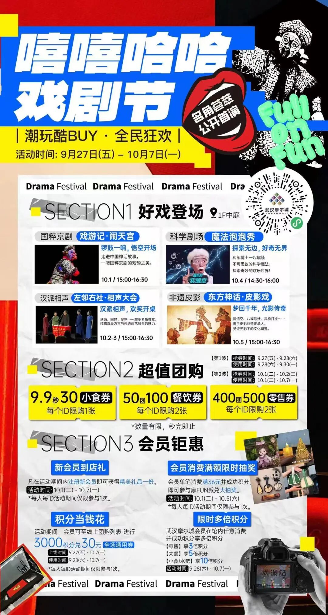 武汉摩尔城「嘻嘻哈哈戏剧节」好戏登场!国粹京剧、汉派相声与科学探索奇妙碰撞,成为全龄共赏的文化殿堂。「烟花一样」艺术展,光影与色彩交织,如梦如幻。汉阳万达儿童舞蹈、亲子电影、天安门DIY手工,亚洲新人歌唱大赛、KPOP随机舞燃爆现场,欢乐满载而归!