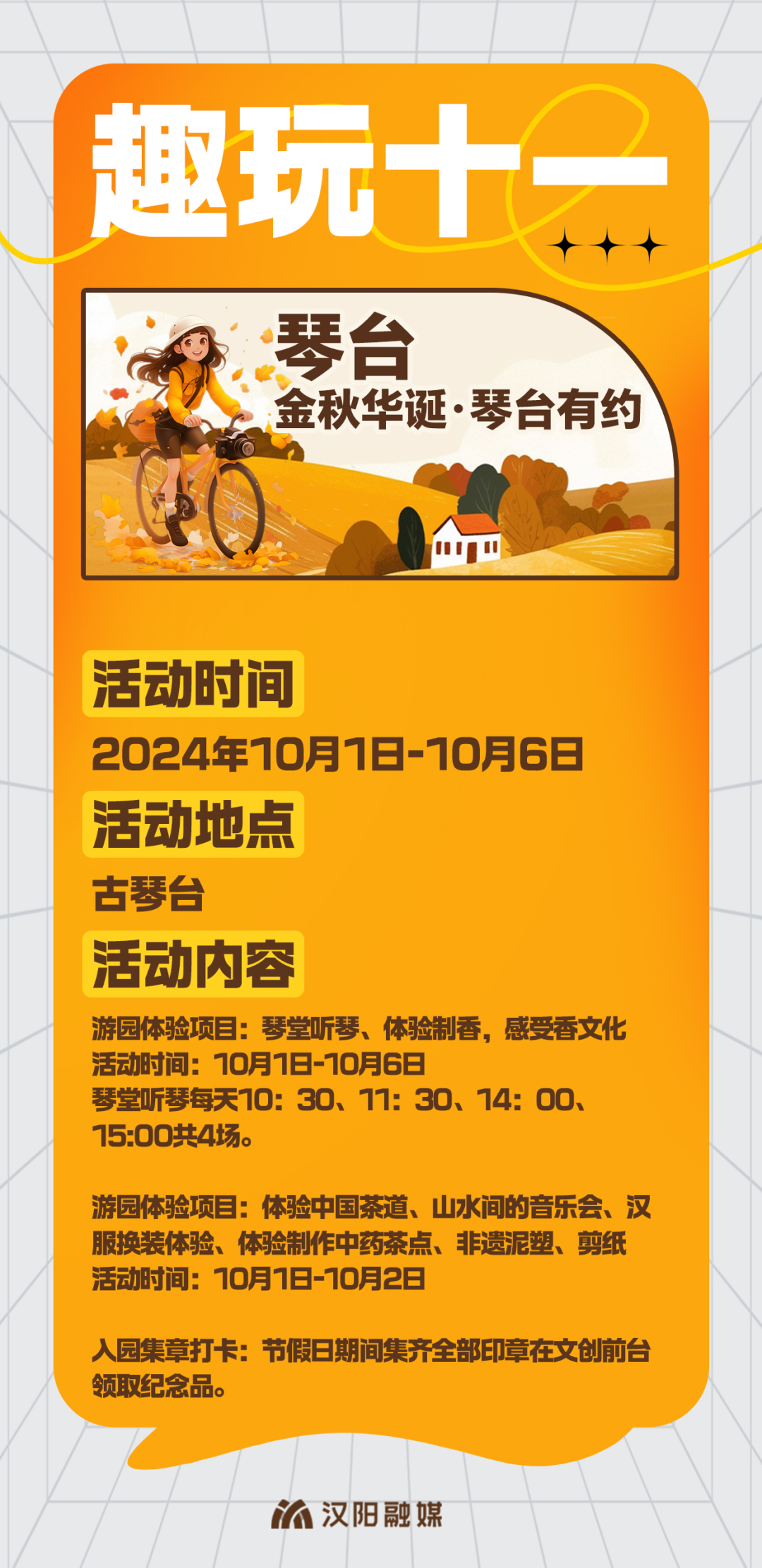 知音汉阳,遇见金秋!亲,汉阳喊您来打卡,汉阳请您来过节!