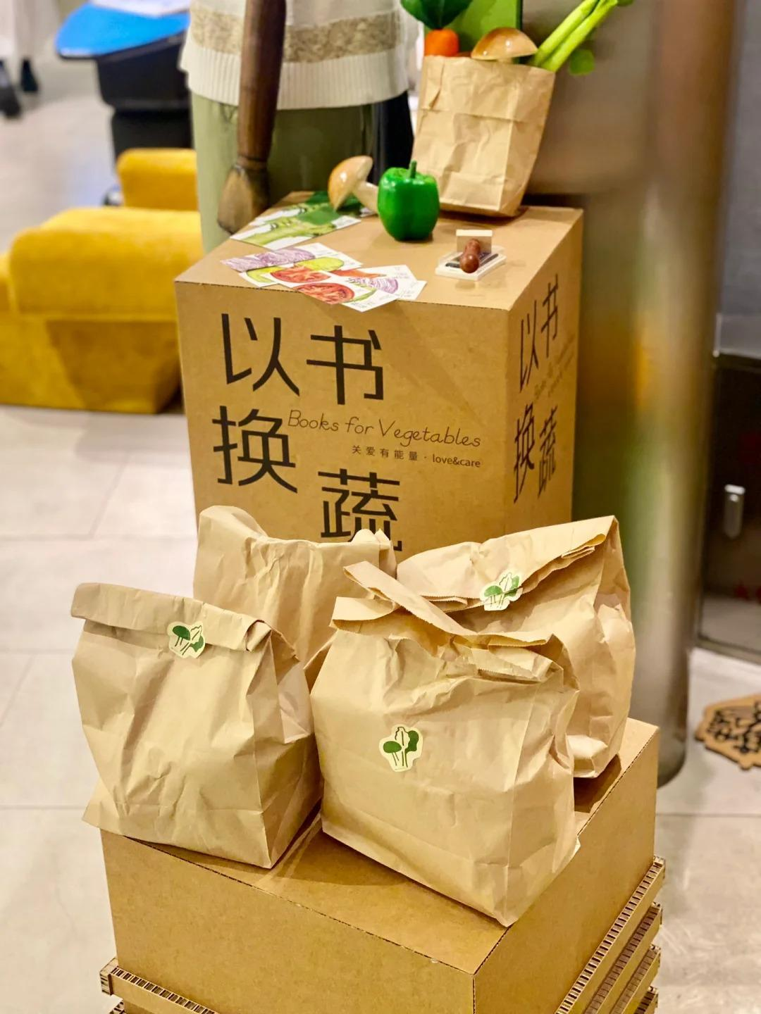 在街边,一场「以书换蔬」的大戏即将展开。来市集现场,别忘了携带两三本书籍,换几颗蔬菜,带着快乐满载而归。