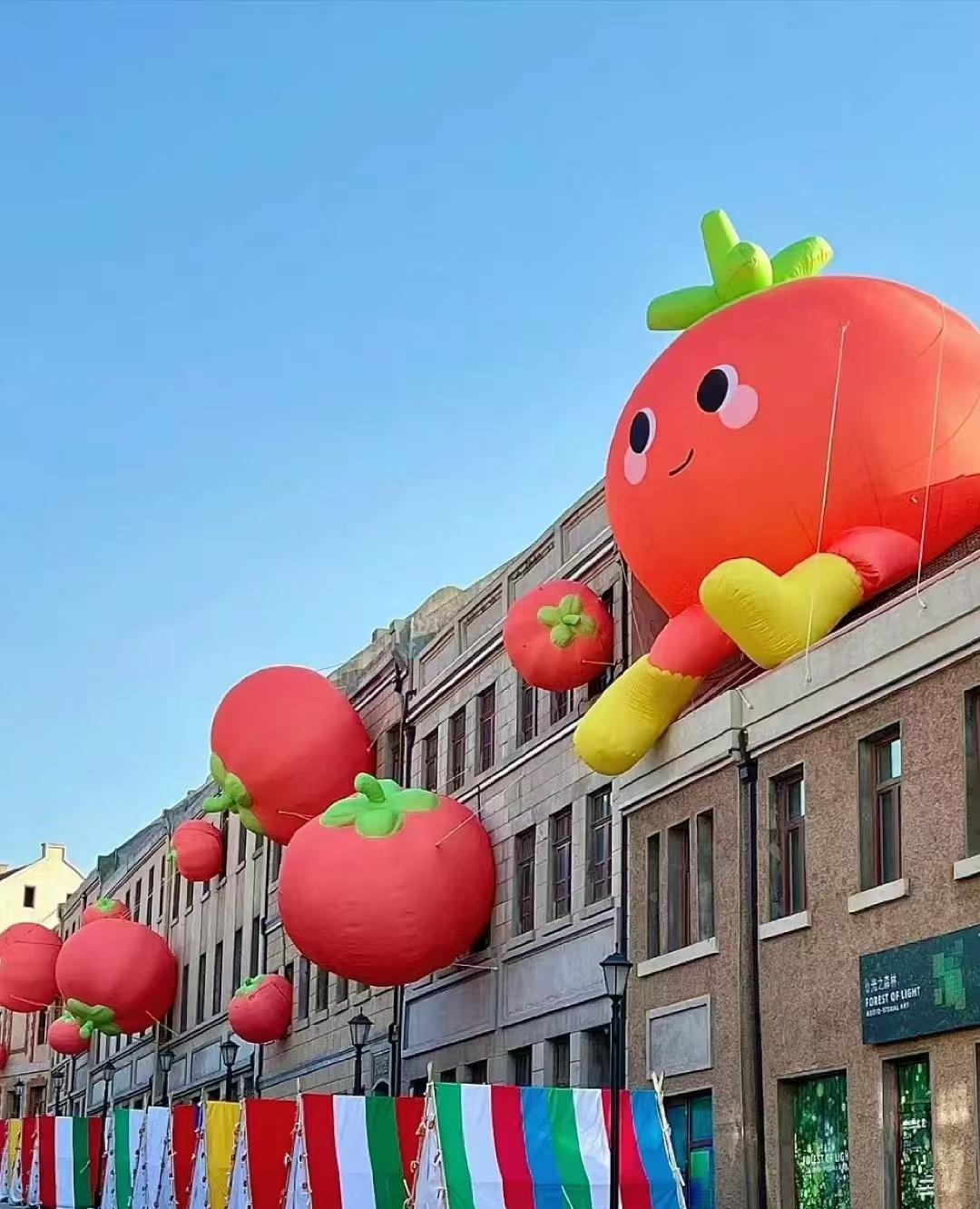 4.5米的巨型番茄气模从建筑房顶或墙面上探出了头,活泼俏皮的摊位设计看着就心花怒放,鲜活、精致、市井,融合浓缩在一个空间,就等你了。