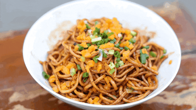 一碗热干面,面条是基础,芝麻酱是灵魂。热干面的芝麻酱有黄芝麻酱和黑芝麻酱两种。黄芝麻酱是口感更加细腻柔滑;黑芝麻酱则颗粒感会更明显。