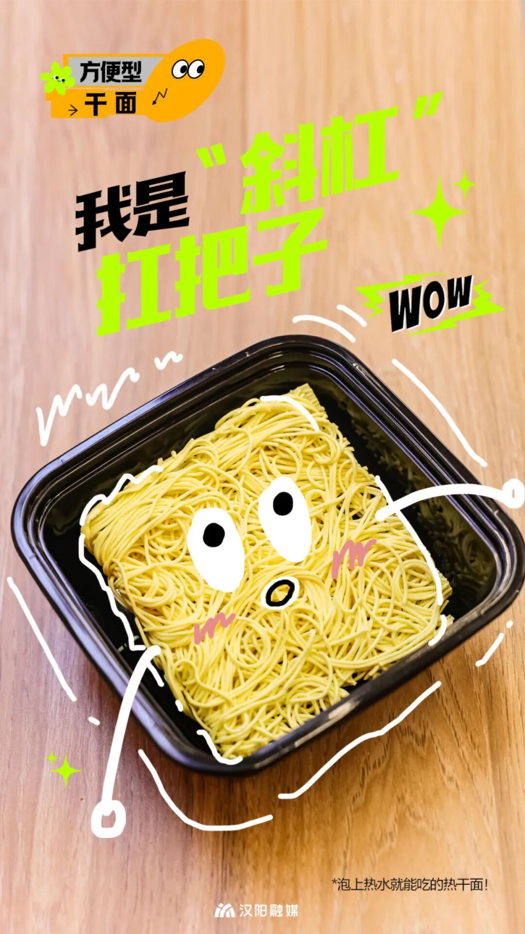 方便型干面,算是方便面和热干面的跨界选手:它既有方便面易泡方便的属性,也是碱水热干面的劲道口感,常温保存非常方便,保质期可达到180天。