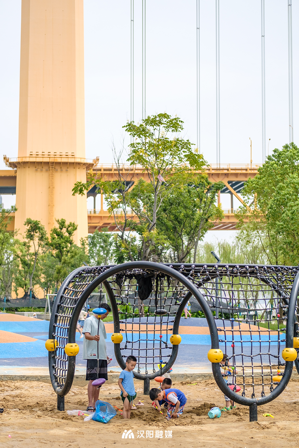 来到武汉杨泗港长江大桥下,一个色彩斑斓的儿童游乐园映入眼帘。滑梯、秋千、沙池……这些孩子们最爱的游乐设施,在桥下井然有序地排列,仿佛为孩子们打造了一个梦幻的童话王国。阳光透过桥体的缝隙,洒下斑驳光影,为这片乐园增添了几分温馨与活力,孩子们在这里欢笑、奔跑,仿佛置身梦幻的童话世界。