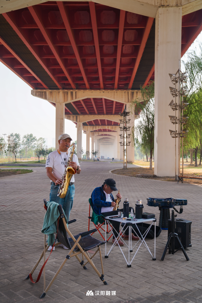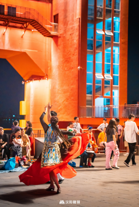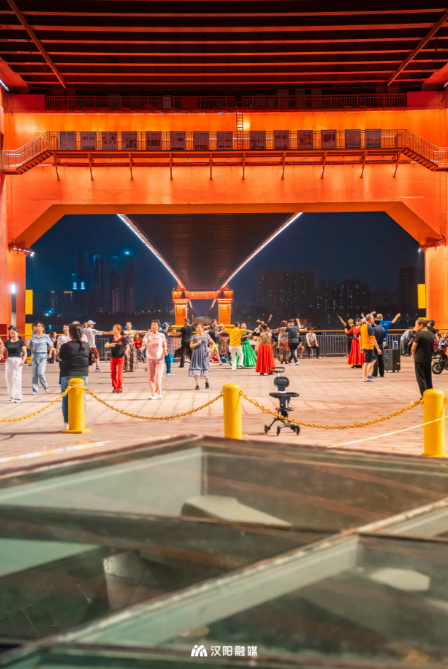 △鹦鹉洲桥下的桥梁文化广场市民们于此散步聊天、跳舞健身。