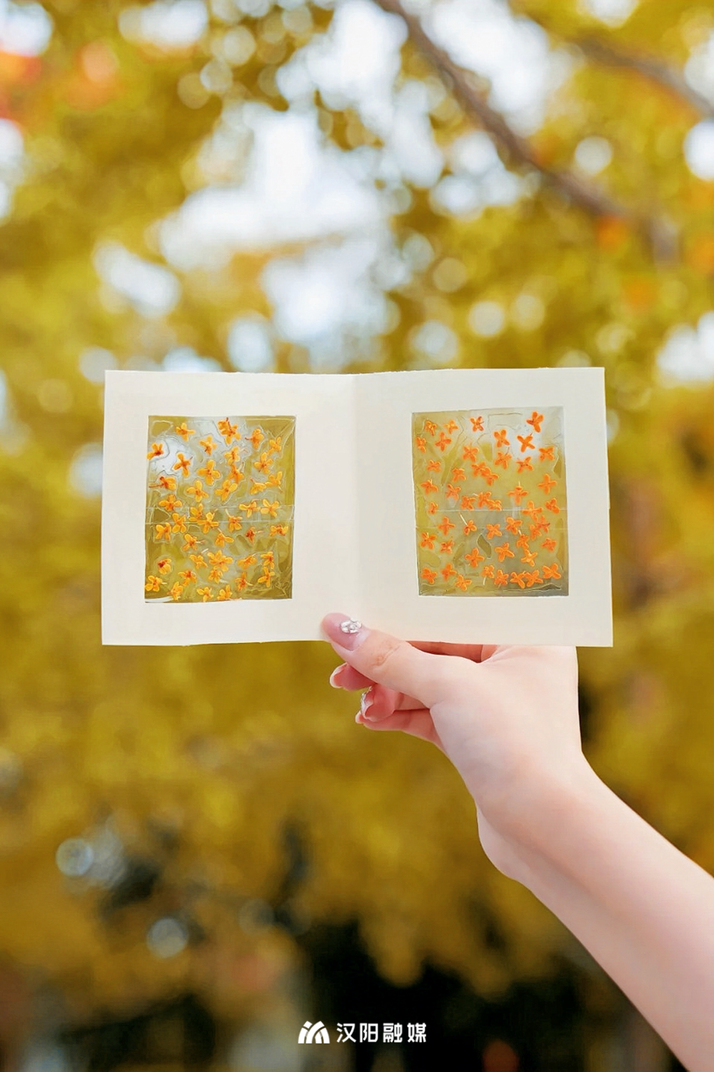 捡了落下来的桂花做书签,像星星一样漂亮,丝丝香气钻入心底,这一刻将秋天留住。
