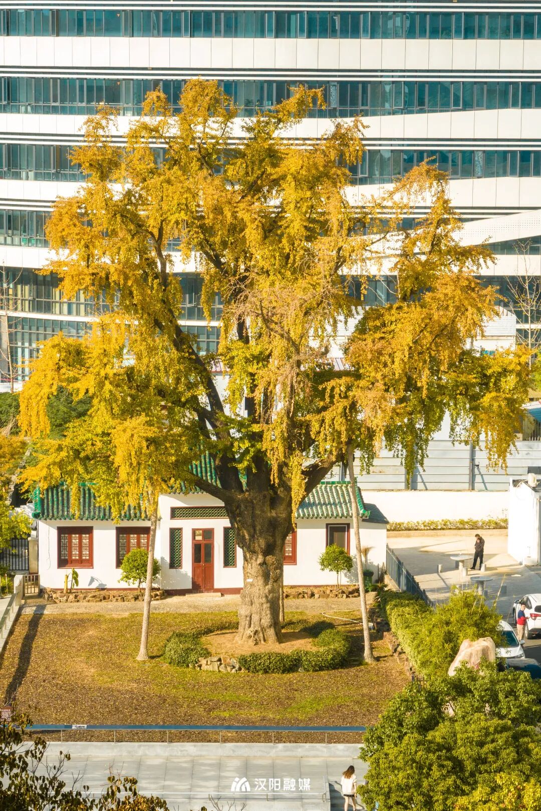 每年秋天,有500多年树龄的汉阳树是当之无愧的顶流。满树鎏金,十分壮观。