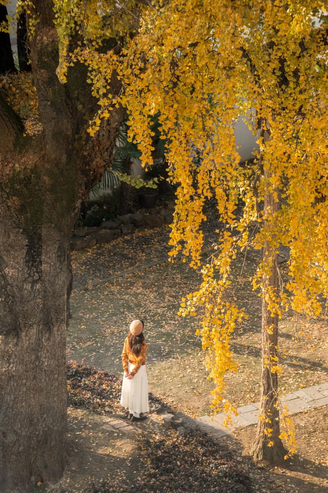 从汉阳树公园启程,与有545年历史的古银杏树合影,记录金黄色的银杏叶铺满小径的诗意与浪漫。