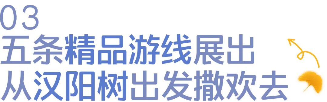 分别以汉阳树为起点,踏上「知音文化之旅」、「工业文明之旅」、「养心治愈之旅」、「时尚动感之旅」、「亲子嗨皮之旅」,每条路线特色不一,内容丰富,值得你花时间亲身感受。