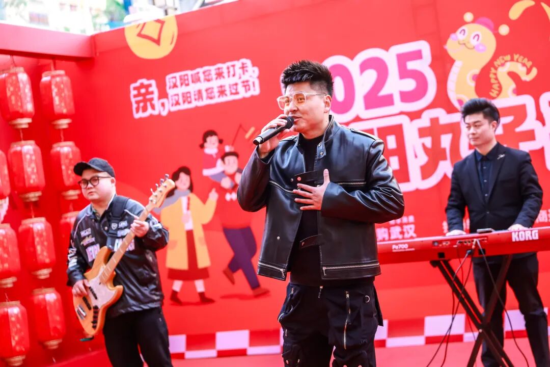 △现场乐队演绎、互动表演好生热闹。今年汉阳新春丸子嘉年华把民俗表演的舞台搭进了年货集市里,龙腾大鼓敲响新年第一声,集市中央搭起色彩斑斓的舞台,龙腾大鼓、国风舞蹈、非遗杂技表演……热闹非凡。市民们不禁感叹:“这才是过年!”