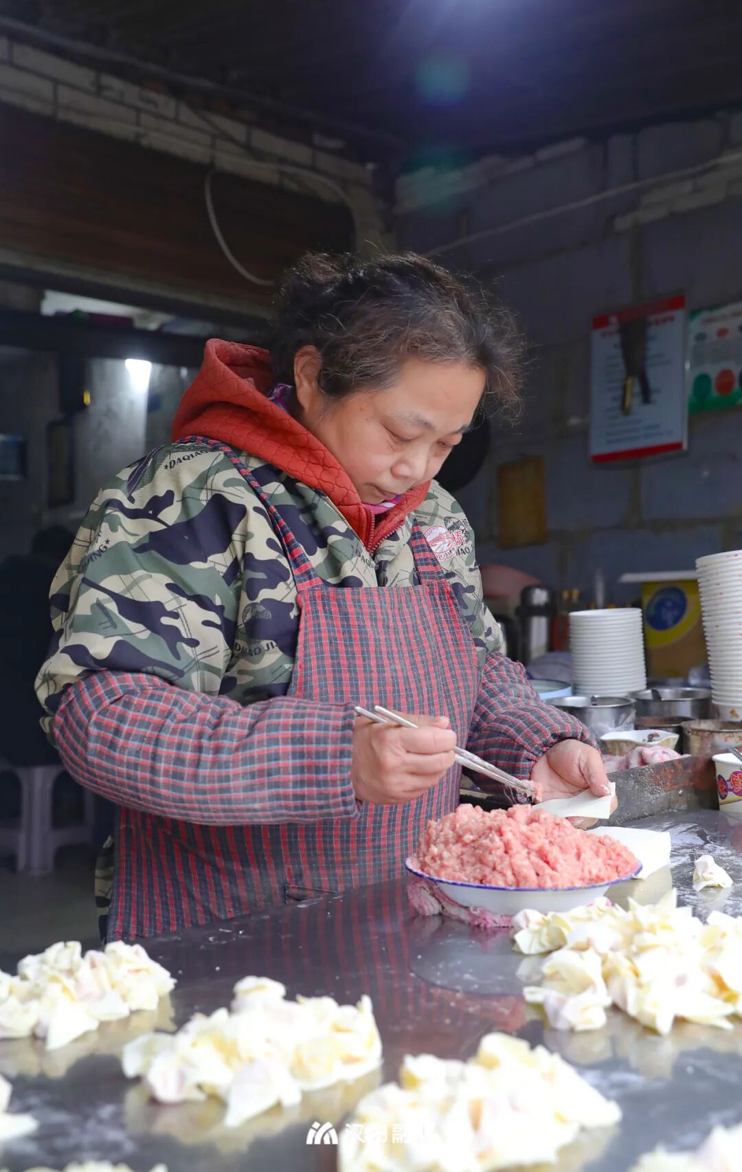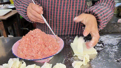 这家馄饨都是现包现煮,用肉新鲜,吃起来肥瘦适中,混着猪油的香气。撒上榨菜、虾米、胡椒、葱花,开启元气满满的新一天。