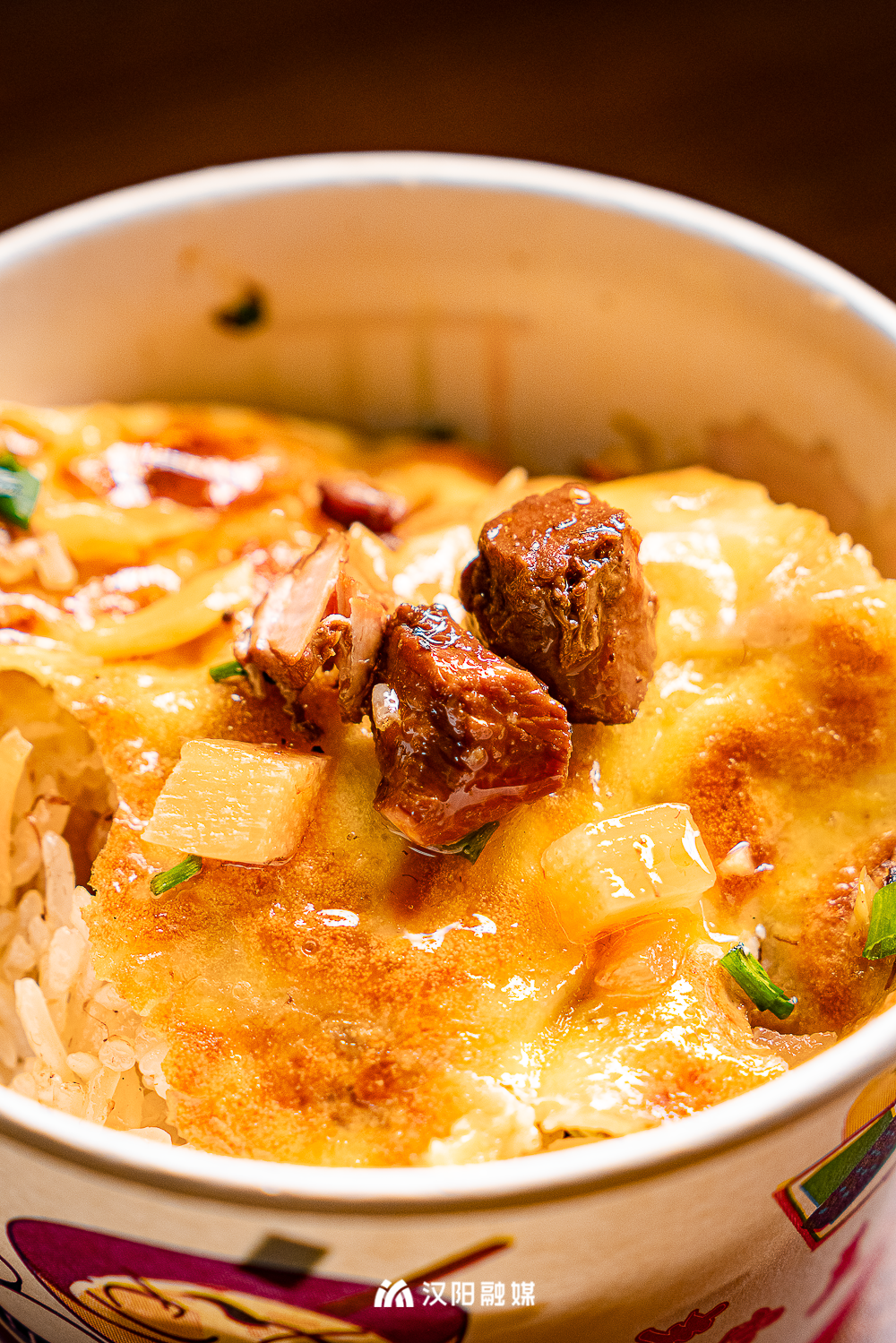 出锅后的每份豆皮,老板都会加一勺臊子卤水。入口后,Q弹米粒在齿间慢慢散开,鲜香十足。