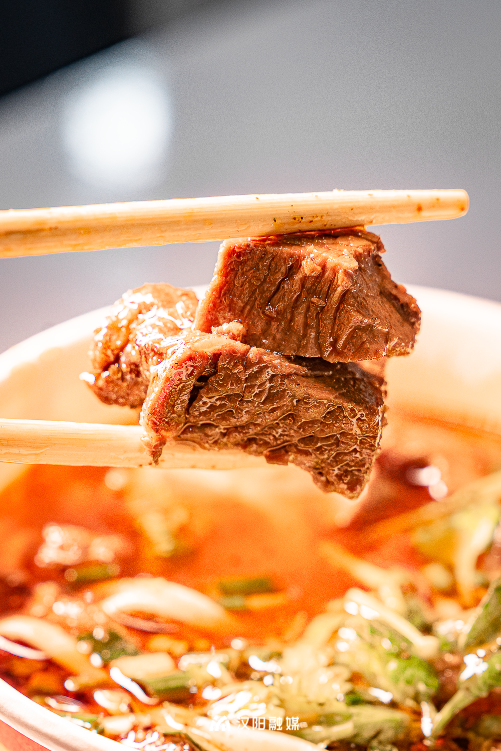 招牌牛腩面,牛腩卤得很到位,吃起来特别有嚼劲,汤底是红油的,香辣味十足但不呛人。碱水面条吸满了汤汁,爽滑劲道。