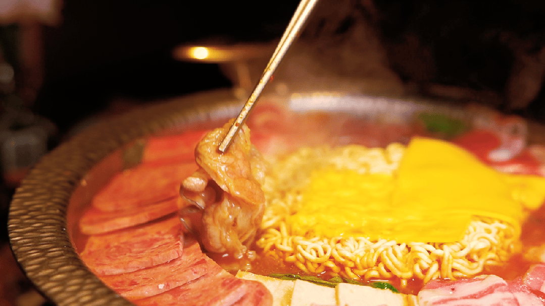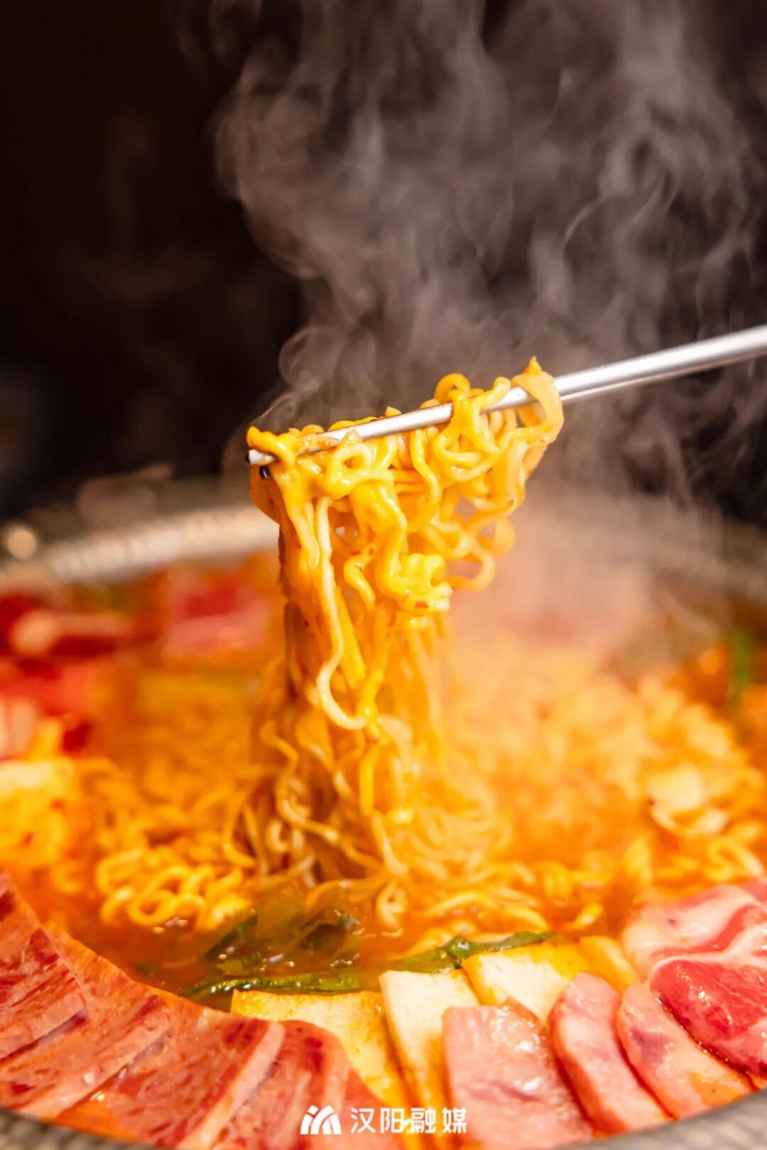 来韩料店怎能错过牛肉泡菜部队锅?大片肥牛、芝士年糕、泡面、满满芝士...融为一锅,咕噜咕噜散发着浓郁的特有香气,光是看着就流口水的程度!