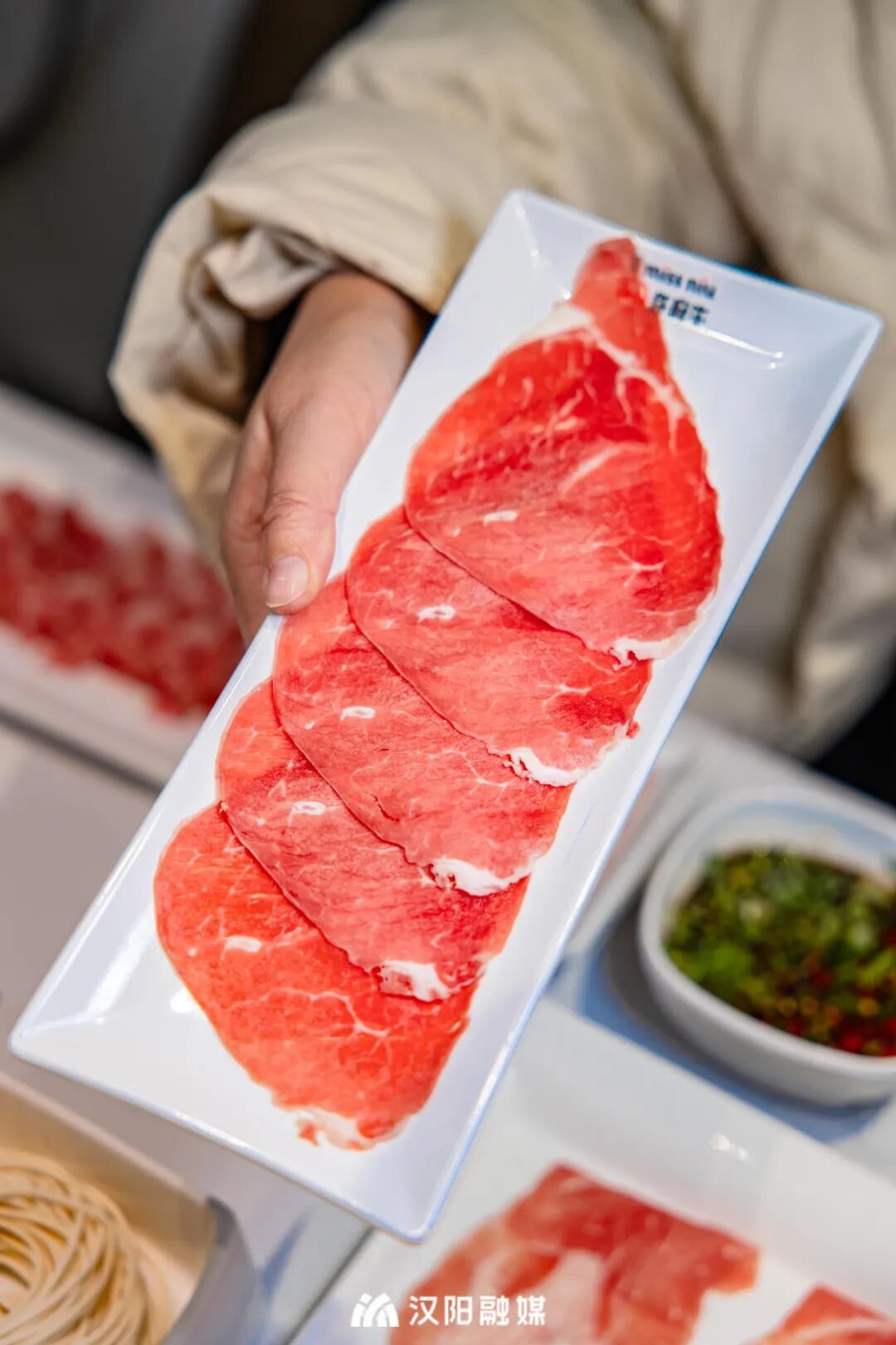 牛腱,前胸,傻傻分不清,看似都是薄薄的一片,但涮煮后口感可大不同:原切牛腱肉,纹理清晰,少脂肪,有嚼劲;原切前胸肉,略带脂肪,肥瘦相间,带着油脂香气……