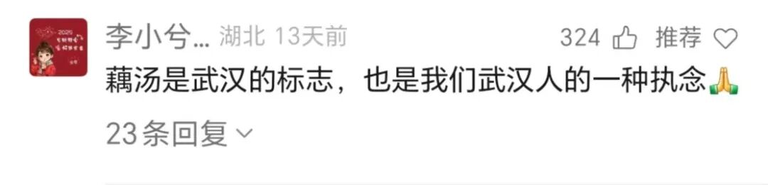 2025年春节,武汉排面拉满。携程数据统计,作为分会场登上总台春晚后,“武汉”搜索量同比暴增1160%。大量游客来到武汉,感受“汉派春节”的魅力。藕汤、热干面,也从武汉私藏,变成了游客必打卡的“TOP美食”,一碗藕汤,从中品尝到的不仅是食材的味道,更是属于武汉人的春节记忆。汉阳知音,赞318